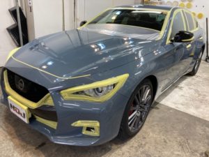 このスレートグレーというボディカラーは非常にデリケートなお色味になりますのでしっかりと照明で確認しながら下地処理と研磨を行ってまいります!
