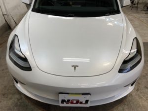 完全硬化型で、更にガラス純度が極限まで上げられた高硬度NOJセラミックコーティングを施工し、表面にはNOJの永久無料メンテナンスと相性抜群の撥水層を施工しており対スリキズ性能も飛躍的に高くなっております!