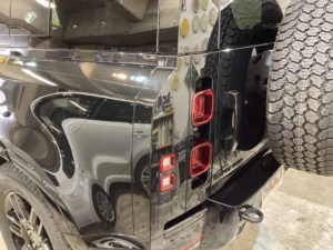 リアゲートに外付けされている予備のホイールにもしっかりコーティングしますのでボディ同様に輝きが増しています🛞✨