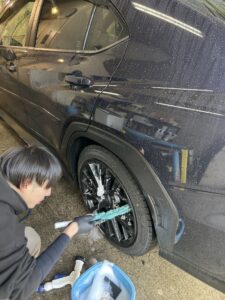 車体を隅々までよく洗い流し、洗車だけでは取りきれていない頑固な汚れをメンテナンス剤で丁寧にお手入れすると、、