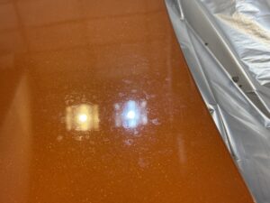 こちらのお客様は、ボンネットにかなり水垢とキズが着いてしまっている状態でした。保管環境があまり良くない、忙しくてメンテナンス頻度も上げれない、それによってこの状態に。