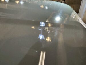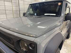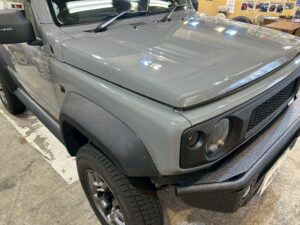 全体を見渡し塗装肌をしっかりと確認してそのお車に対して適切な研磨工程を入れます。今回は、全体的にキズと水垢がありました。ボンネットには、かなり深いキズがびっしりと。