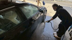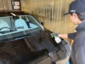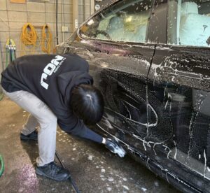 車両を預かったらすぐに全体を丁寧に手洗いし、現状付いている汚れをしっかり洗い流します。