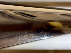 - LEDライト下や手持ちライトを使用し傷や汚れ等をしっかりと確認しながら研磨