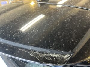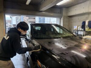 特に濃色系や黒系のボディはこれらの汚れやシミが目立ちやすいので、お手入れで大変な思いをしている方も多いと思います。。本日メンテナンス来店いただいたレクサス.RXですが、屋外駐車のため花粉黄砂付着の上に雨が降りかなり汚れてしまっている状態でした💦