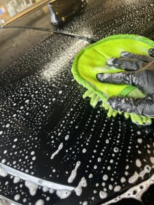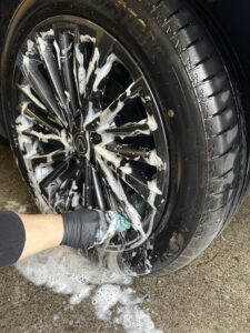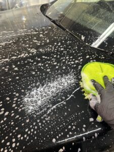 まずは車体全体を丁寧に手洗い洗車!シャンプーで取り除ける部分の汚れをやさしく洗い流します✨