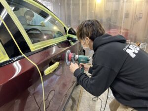 NOJは磨きにも力を入れてるので、塗装に合った研磨によって塗装肌を美しく艶のある状態へと復活させていきます。研磨は、コーティングだけでは作れない潤いを出すので仕上がりが綺麗になったり、その後の状態も良くなるのでとても大事な作業となります。
