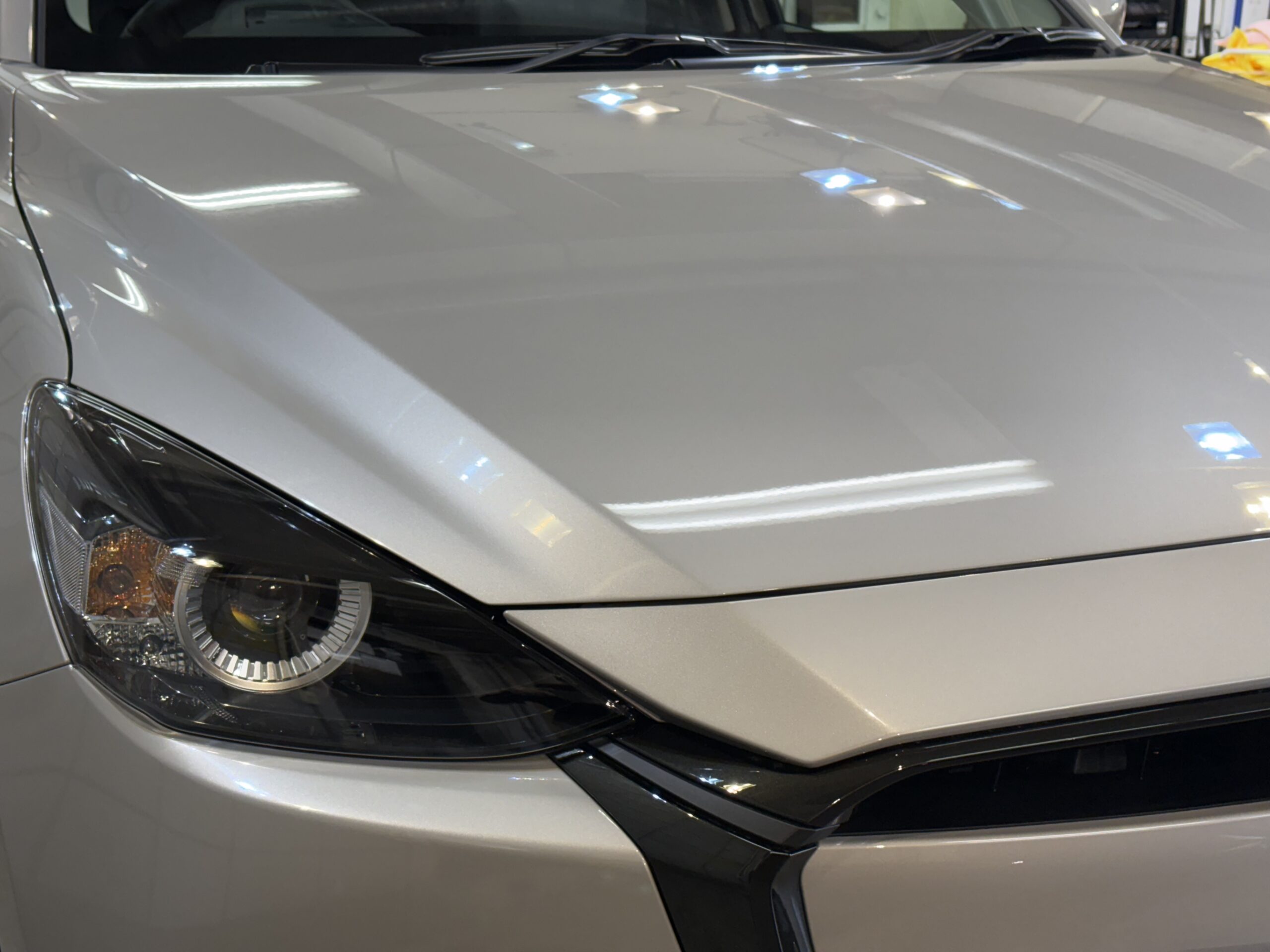 新車でも、キズやクスミなどがございます。そこで塗装に合った研磨をしてあげる事でコーティングだけでは出せない艶と潤いを作ります。