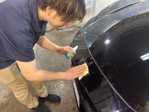 洗車後さらにスケール除去剤を使って全体の水垢汚れの除去、フロント周辺には虫汚れも多かったので虫取り剤も使用しています✨✨撥水効果も見事に復活しました👌!